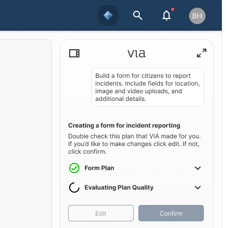 Create new Forms, print views, or saved views with just natural language prompts to VIA.