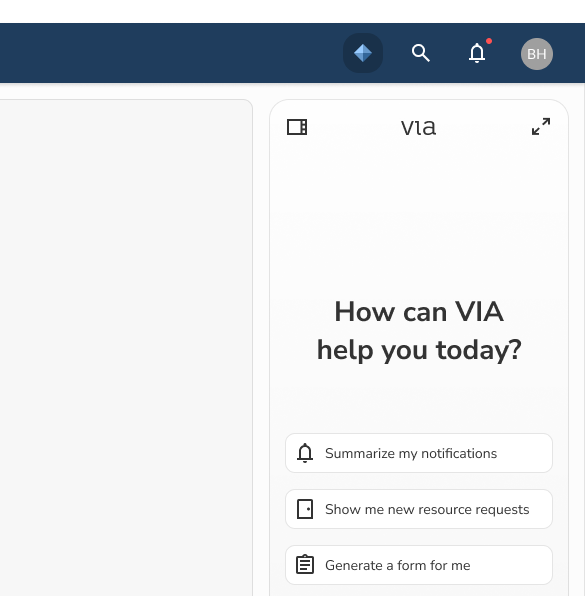 VIA learns from your prompts and fast tracks you to key data and processes with context-aware suggestions.